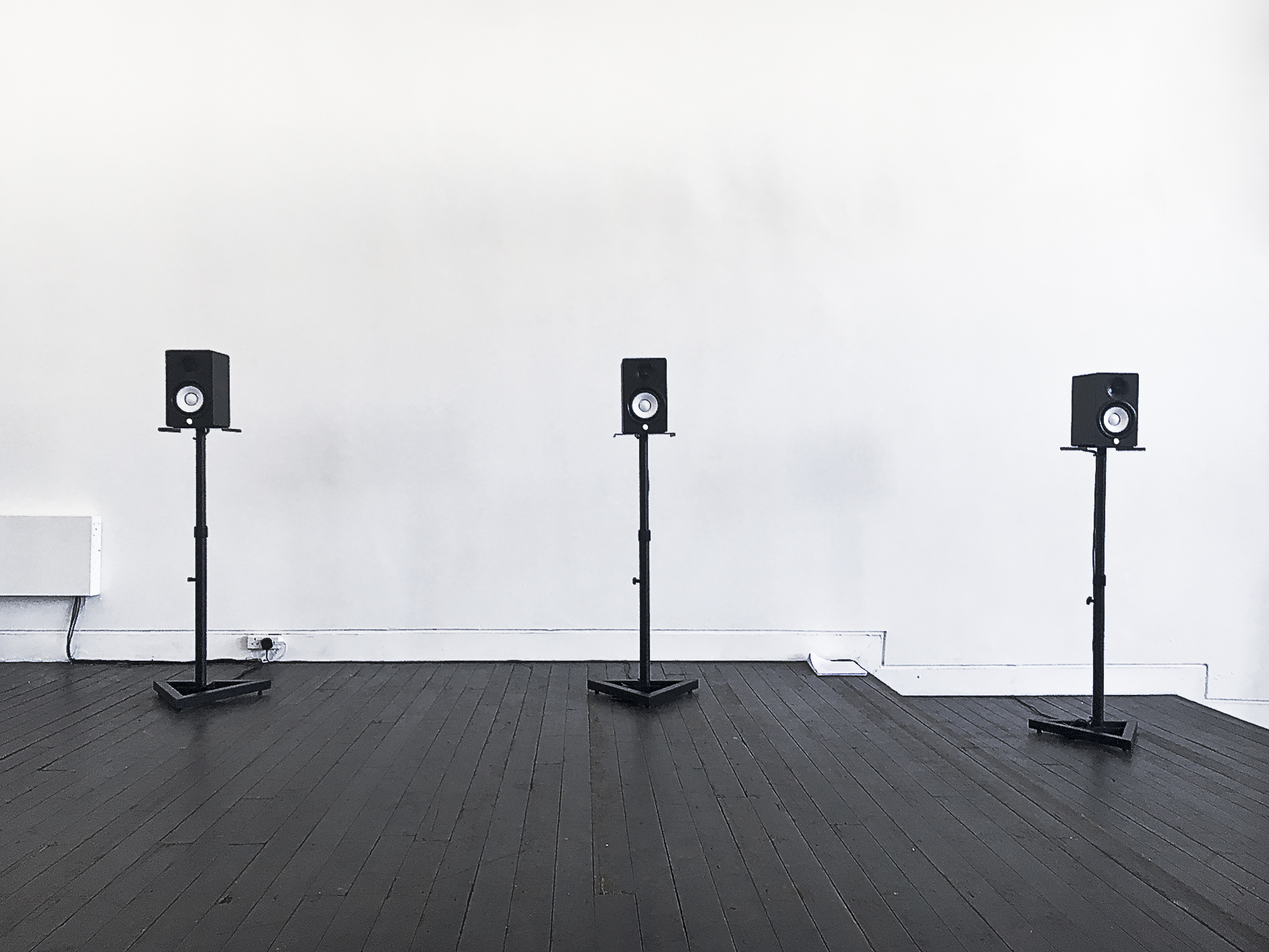 a three-channel sound installation that consists of three mounted speakers